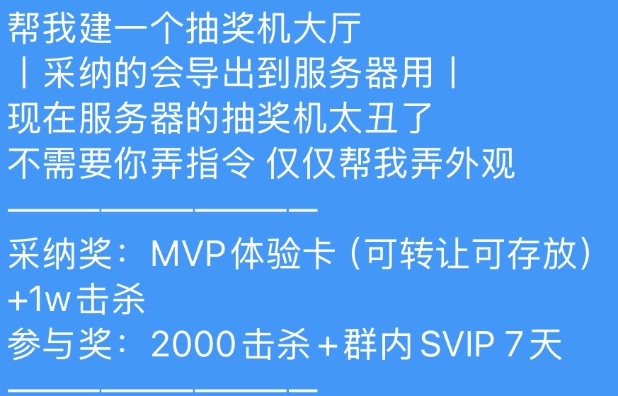 为你想移到服务器的抽奖机外观来上一票吧! 为了公平起见 建筑师已匿名